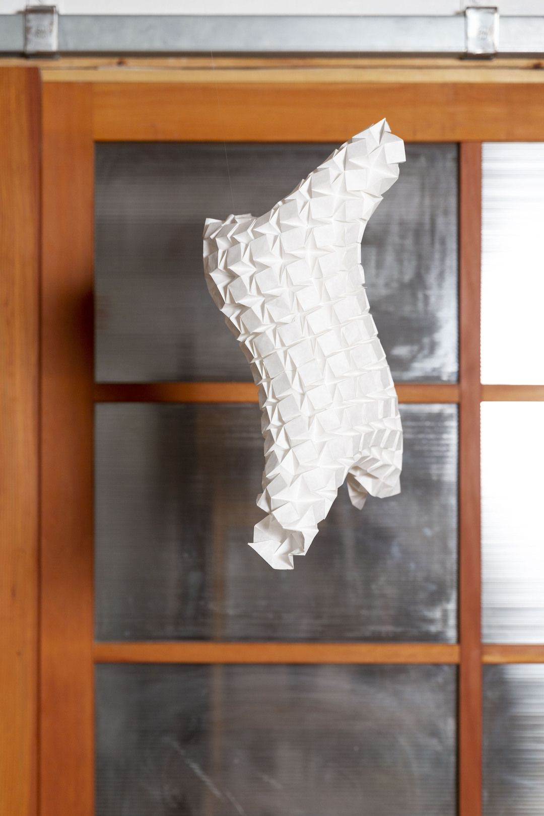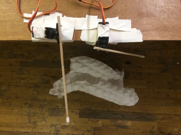 A kinetic origami sculpture, created at the School for Poetic Computation, exhibited at the 2018 Spring showcase.